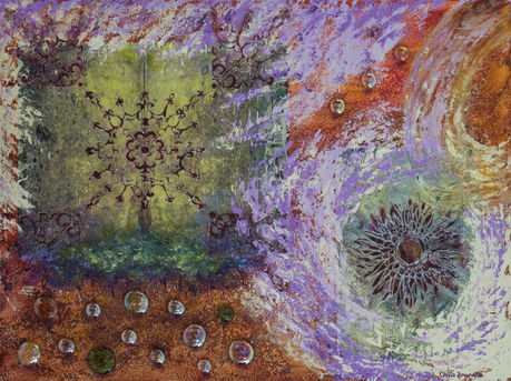 All of my mixed media artwork is made using professional grade Golden and Liquitex brand acrylic paints and products. All are done on 1 1/2 inch gallery wrapped canvases with the design extending on all sides. They are designed for hanging on a wall as is; no frame is needed. All are sealed with acrylic binder for protection.